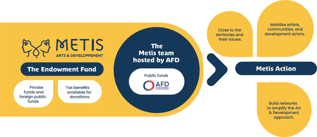 The Metis Arts and Development Fund helps build and implement grassroots initiatives to heighten the senses in territories concerned by development issues.