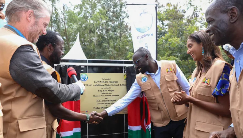 The ceremony brought together key stakeholders, including the French Ambassador to Kenya, H.E. Arnaud Suquet; Sandra Kassab, AFD Africa Director; the Governor of Kisumu County, Prof. Peter Anyang’ Nyong’o; the Cabinet Secretary for Water, Sanitation & Irrigation, Eng. Eric Muriithi Mugaa; Principal Secretary Julius Korir; KIWASCO Managing Director, Thomas Odongo; and representatives fro them EU, EIB and the Lake Victoria South Water Works Development Agency (LVSWWDA).