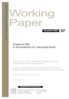 It is generally agreed the last public-private partnership in which EDM was engaged, from 2000 to 2005, was a "resounding failure": international donors, professionals, and the totality of the Malian...