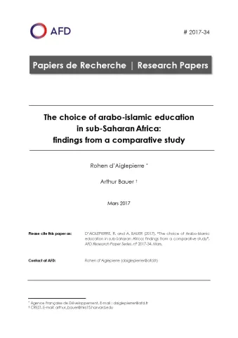 The choice of arabo-islamic education in sub-Saharan Africa: findings from a comparative study