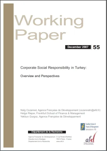 The report is the outcome of four months of collaboration between AFD and the Frankfurt School of Finance and Management to examine existing CSR stakeholder initiatives and practices in Türkiye. Between 2005 and 2006, a literature review, field visits and face-to-face interviews with key public and private stakeholders were conducted. The result was a detailed strategic study of which the present report compiles the key findings and conclusions. This report provides readers with a recent picture of the state of CSR awareness and practices among public and private stakeholders in Türkiye. Based on the analysis of specific drivers and constraints, it suggests practical steps that could be taken by public and private organizations to support the further development of CSR in Türkiye.