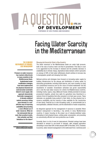 Pressure on water resources has reached critical levels in many countries in the Mediterranean Basin. Sophisticated water mobilization strategies have been implemented but physical, financial and environmental constraints linked to such supply-side approach demonstrate that better management of already mobilized water is necessary. Acting upon demand is a cost effective way of improving availability and promoting a more efficient use of water resources. What are the instruments that are used, their practical results, their potential, and their limitations for the future?