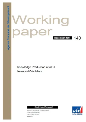 AFD has a dual mandate to finance sustainable development and produce knowledge. The second aspect of this mandate aims to enhance strategies and provide concrete responses to the challenges of poverty and sustainable development. This means learning from experience, anticipating future challenges, proposing innovative solutions, and promoting exchanges between actors and geographies. This mandate enables AFD to contribute to international debates and further France‘s influence. This knowledge production is systematically conducted in partnership with the academic world, to which AFD brings its specific knowledge of concrete development issues as well as privileged access to the fields involved. This paper presents the stakes and orientations for AFD in terms of knowledge production for the next five years (2014 - 2018).
