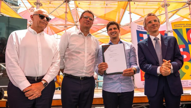 La deuxième phase du projet a été lancée à l’occasion de l’inauguration du Pavillon France–Brésil, un espace culturel installé sur le Pátio de São Pedro, au cœur du festival Rec’n’Play 2025. Ce lieu emblématique du centre historique de Recife fera l’objet d’un travail de requalification urbaine dans le cadre du projet Nantes-Recife. Le pavillon, intégré à la Saison croisée France–Brésil, proposera des activités culturelles et gastronomiques, symbolisant la vitalité des échanges entre les deux pays. L’événement s’est déroulé en présence de l’Ambassadeur de France au Brésil, Emmanuel Lenain, du Consul général Serge Gas, ainsi que de représentants de la Ville de Nantes, ville jumelle de Recife.