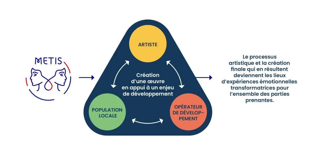 Dans les pays soumis à de fortes vulnérabilités, le fonds Metis permet à une grande variété d'entités (hôpital, mairie, entreprise, ONG environnementale, parc naturel, réseau d’écoles, etc.) de mobiliser un artiste et de construire avec lui un espace de dialogue et de création en lien avec un enjeu de développement.