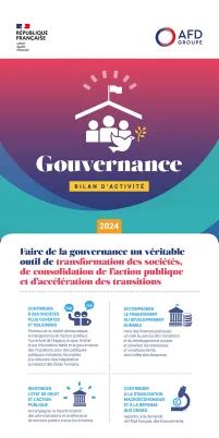 Le groupe AFD – à travers ses trois entités (AFD, Expertise France et Proparco) – a fait de la gouvernance démocratique et inclusive une ambition transversale de son action. En 2024, une feuille de ro...