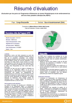 Le PEPS vise à améliorer les conditions de vie des Brazzavillois par l’extension d’un service d’eau potable performant et durable dans les quartiers périphériques. Les objectifs sont : • D'étendr...