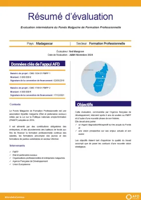 Evaluation intermédiaire du Fonds Malgache de Formation Professionnelle (FMFP), Madagascar (CMG1534 ; CMG1749)