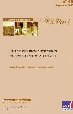 L’AFD a décidé d‘adopter le dispositif des évaluations décentralisées en 2006, dans le triple objectif d‘un approfondissement de ses partenariats, d‘une plus forte redevabilité et d‘une extension de l...