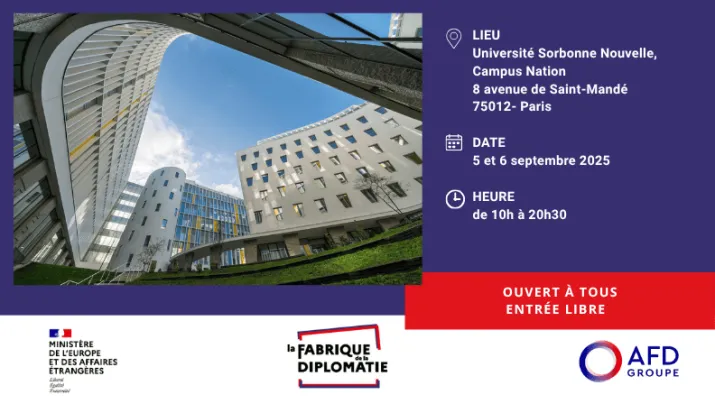 Les 5 et 6 septembre 2025, l’université Sorbonne Nouvelle-campus Nation nous ouvre ses portes pour accueillir La Fabrique de la Diplomatie, événement phare de la rentrée diplomatique, organisé par le...
