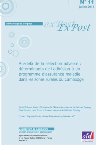 La théorie classique de l'assurance (santé) prédit que ce sont les ménages qui anticipent des dépenses de santé élevées qui sont le plus enclins à souscrire une assurance santé (sélection adverse ; cf. Analyse d‘impact no. 10). Toutefois, d'autres facteurs, tout aussi importants, peuvent rentrer en jeu dans la décision de souscrire ou non une telle assurance. Ainsi, les ménages les plus averses au risque (financier) sont en théorie ceux le plus enclins à souscrire une assurance ; à l’opposé, ceux ayant la possibilité de recourir à d‘autres formes « d‘auto-assurance » (épargne, emprunt, etc.) devraient être moins incités à adhérer. Des théories plus récentes suggèrent que les ménages soumis à de fortes contraintes budgétaires et ceux ayant une compréhension limitée du fonctionnement de l’assurance peuvent être découragés de souscrire. Un effet propre à l’âge et au « genre » est également susceptible d‘être isolé, de même que l’influence de la confiance dans la médecine occidentale. Ces facteurs de sélection (ou d'autres, moins traditionnels) peuvent se révéler particulièrement pertinents dans les pays en développement. C'est ce qu'illustre cette étude, menée dans les zones rurales du Cambodge durant l'expansion d‘un programme de micro-assurance de santé, ayant fait l’objet d‘une expérimentation aléatoire contrôlée.