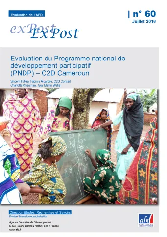 Le Programme national de développement participatif (PNDP) est un instrument de développement local mis en place en 2004 par le gouvernement camerounais avec l’aide de plusieurs partenaires techniques et financiers (PTF) multilatéraux et bilatéraux, dont principalement la Banque mondiale et l’AFD. Le Programme poursuit (i) un objectif de réduction de la pauvreté en milieu rural au travers d‘un mécanisme de financement décentralisé, avec une orientation prononcée à son lancement sur la délivrance de services sociaux de base, et parallèlement (ii) un objectif corrélatif d‘appui au processus de décentralisation. Cette évaluation rétrospective porte sur l’évaluation du Programme et des deux concours financiers successifs qui lui ont été alloués dans le cadre du Contrat de désendettement et de développement (C2D) du Cameroun, dont le volet seconde génération est en cours de mise en oeuvre (subventions de 20 M€ sur la période 2007-2011 et de 57,8 M€ sur la période 2012-2016).