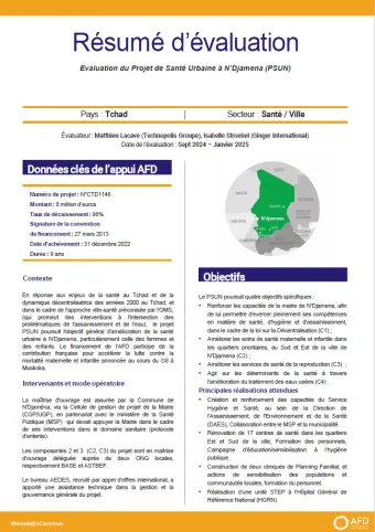 Evaluation finale du Projet de Santé Urbaine à N’Djaména (PSUN), Tchad (CTD1146)