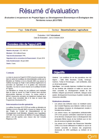 Evaluation à mi-parcours du projet d’appui au Développement Économique et Écologique des Territoires ruraux (ECOTER), Côte d’Ivoire (CCI1481)