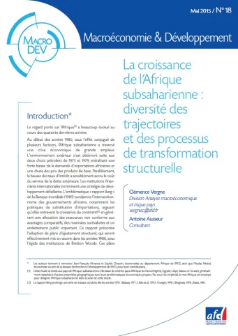 La croissance de l’Afrique subsaharienne : diversité des trajectoires et des processus de transformation structurelle