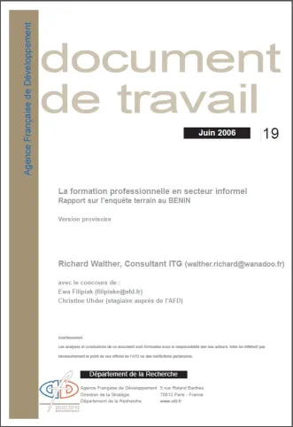 La Formation Professionnelle en Secteur Informel - Rapport sur l’enquête terrain au Bénin