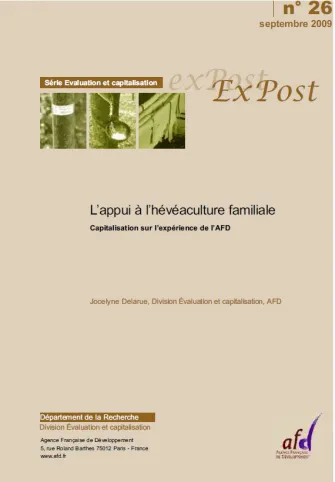 Cette capitalisation vise à tirer des leçons sur les modalités d‘intervention de l’AFD en appui au développement de l’hévéaculture familiale. Elle repose sur une revue des projets de l’AFD dans les trois principaux pays d‘intervention en ce domaine : le Vietnam, le Cambodge et le Ghana. Un éclairage complémentaire est apporté par l’analyse de filières d‘hévéaculture familiale appuyées dans les années 1990 par l’AFD en Côte d‘Ivoire et en Guinée, et de la politique thaïlandaise en faveur de l’hévéaculture familiale.