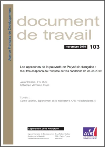 Afin de dresser un bilan complet et actualisé des indicateurs de pauvreté, l’institut TNS a réalisé en août 2009 la collecte d‘une enquête sur les conditions de vie en Polynésie française (ECVPF-2009), avec l’appui technique de l’ISPF sur un financement de l’AFD. En raison de contraintes de coûts, l’enquête n‘est représentative que de la population des Îles du Vent, Tahiti et Moorea, où résident les trois quarts de la population de Polynésie française. Outre la pauvreté monétaire, cette étude porte aussi sur les dimensions non monétaires de la pauvreté, ainsi que sur sa perception par la population elle-même. Cette enquête vise à permettre une analyse simultanée des différentes dimensions de la pauvreté et de la qualité de la vie, en introduisant le concept de bien-être.