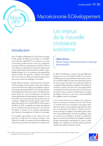 Avec 23 millions d‘habitants, la Côte d‘Ivoire est le pays le plus peuplé de l’Union économique et monétaire ouest-africaine (UEMOA) et constitue un moteur traditionnel de cette zone. Affaiblie par une décennie de conflits et d‘instabilité politique, la Côte d‘Ivoire, quatrième économie d‘Afrique subsaharienne en 1995, ne se positionne aujourd‘hui plus qu’à la neuvième place. Cependant, le principal producteur mondial de cacao, qui a bénéficié d‘une annulation partielle de dette en 2012, est entré à nouveau dans un cycle de forte croissance économique (rythme moyen de croissance supérieur à 8% depuis 2012). Cette situation ouvre de nouvelles opportunités à la Côte d‘Ivoire, mais soulève également des enjeux forts qui sont présentés dans ce numéro.