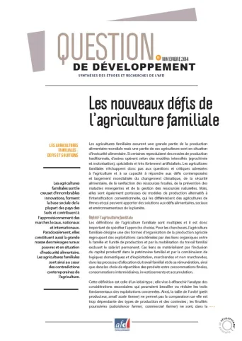 Les agricultures familiales sont le creuset d’innombrables innovations, forment la base sociale de la plupart des pays des Suds et contribuent à l'approvisionnement des marchés locaux, nationaux et internationaux. Paradoxalement, elles constituent aussi la grande masse des ménages ruraux pauvres et en situation d’insécurité alimentaire. Les agricultures familiales sont ainsi au cœur des contradictions contemporaines de l'agriculture.