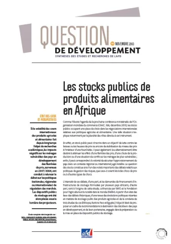 Si la volatilité des cours Internationaux des produits agricoles et alimentaires fait depuis longtemps l’objet de recherches académiques, les impacts négatifs sur les ménages vulnérables des pays en développement des flambées de prix, survenues en 2007/2008, ont conduit à relancer le débat sur les politiques (nationales, régionales ou internationales) de régulation des marchés. Les dispositifs publics de stockage ont été alors placés sous la lumière des projecteurs.